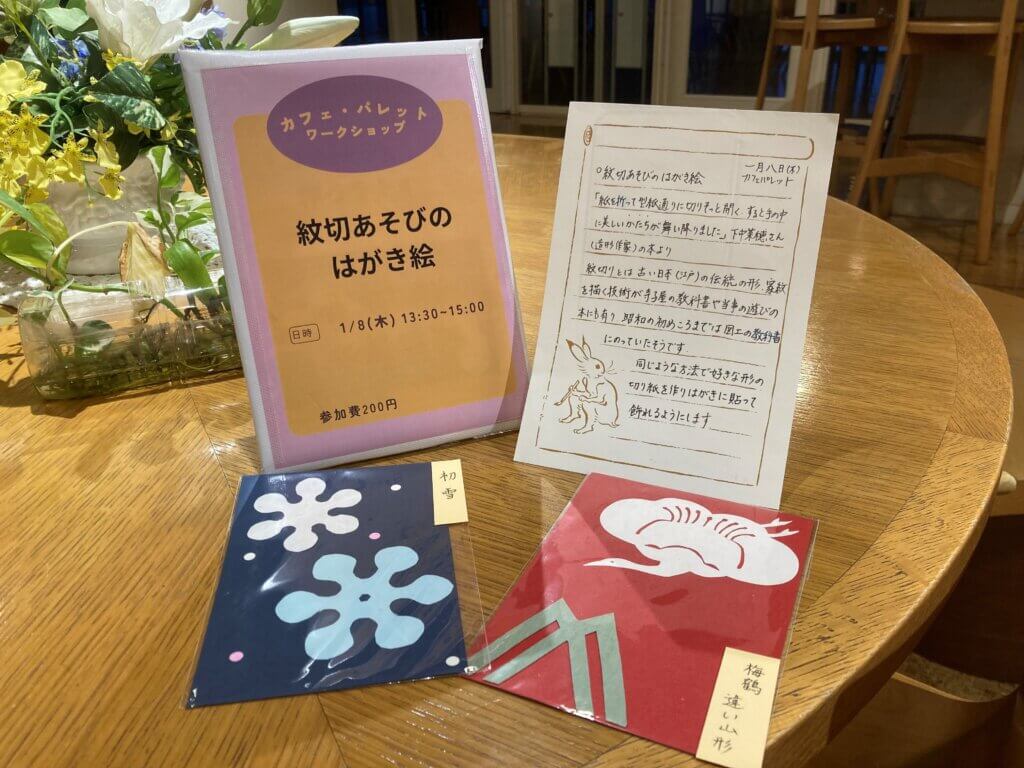 | 内容 | センターフリースペースにて、利用者同士の出会いやつながりを育む「場」を開催 手芸や工作などのワークショップ(奇数月)や焼菓子提供(毎月)があります。 1月のワークショップ:「紋切あそびのはがき絵」 |